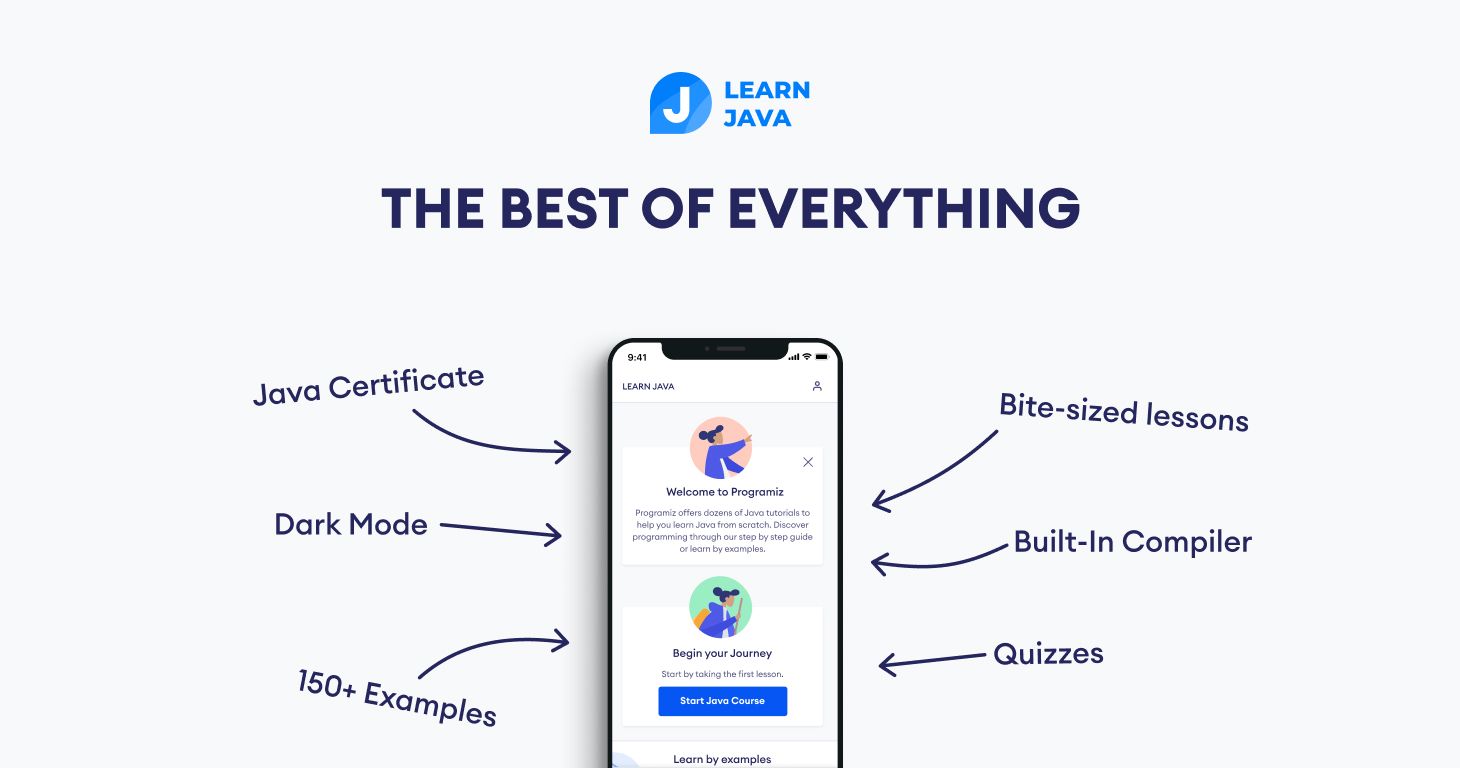 作为一个团队,我们非常重视您的反馈,Learn Java 是您回应的产物。我们仔细评估了您通过我们的网站和应用程序提供的所有宝贵反馈,并将我们所提供内容的精华融入了 Learn Java: Programiz。