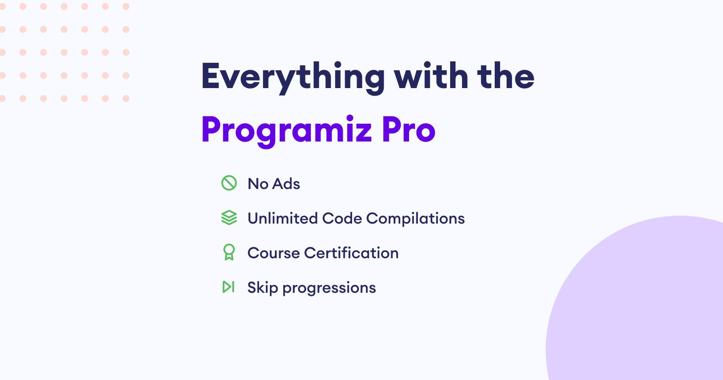与我们之前的应用程序类似,您可以通过我们的 Programiz Pro 月度/年度订阅立即获得无广告体验,并无任何干扰地浏览应用程序!